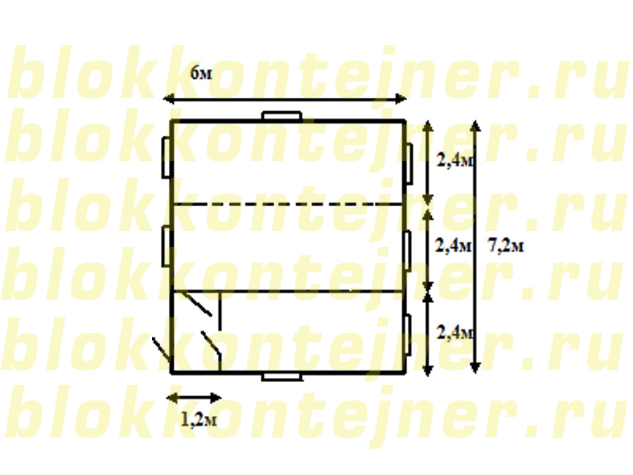 Модульное здание 6*7,2*2,5 м.-1шт,  состоит из 3-х  БК  6,0*2,4*2,5 м.